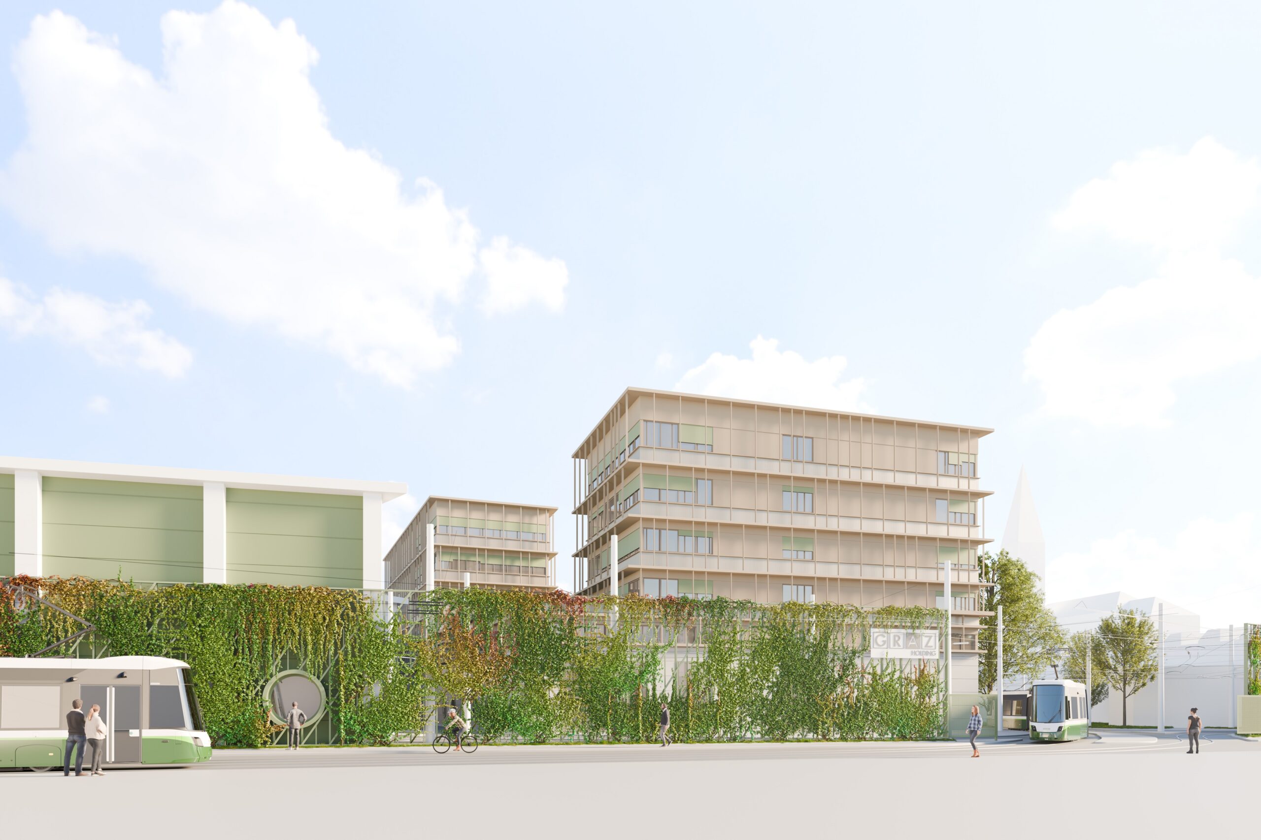 Im Kombinationsprojekt aus Umwelt, Mobilität und Stadtentwicklung entstehen in der Steyrergasse in einer neuen Abstellhalle 25 Plätze für neue, lange Bim-Garnituren. Die bestehende Hauptwerkstätte wird ausgebaut sowie eine neue Betriebswerkstätte errichtet. Zudem entstehen neue Büros und eine Tiefgarage für Fahrzeuge der Holding Graz und ihrer Mitarbeiter:innen. Herzstück am begrünten Dach ist eine Photovoltaikanlage auf rund 5500 Quadratmetern.
